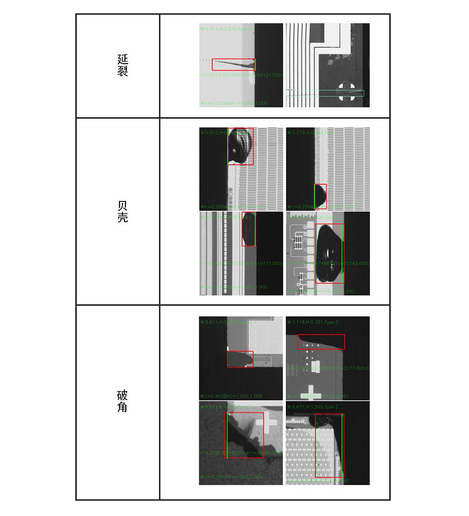 Defects detected include: cracks, shells, and broken corners